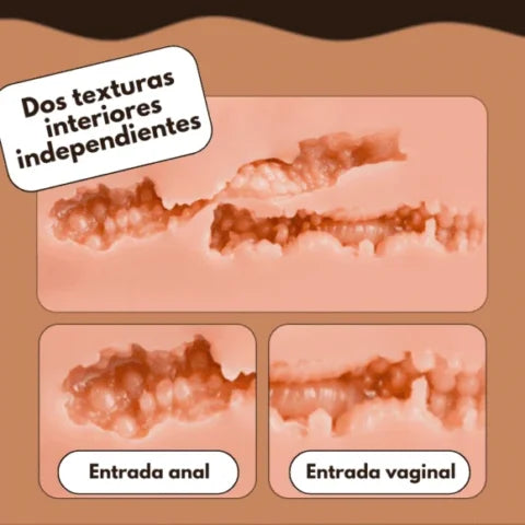 ✔ Doble entrada ajustable – Vagina y ano con canales independientes y texturas 3D internas.