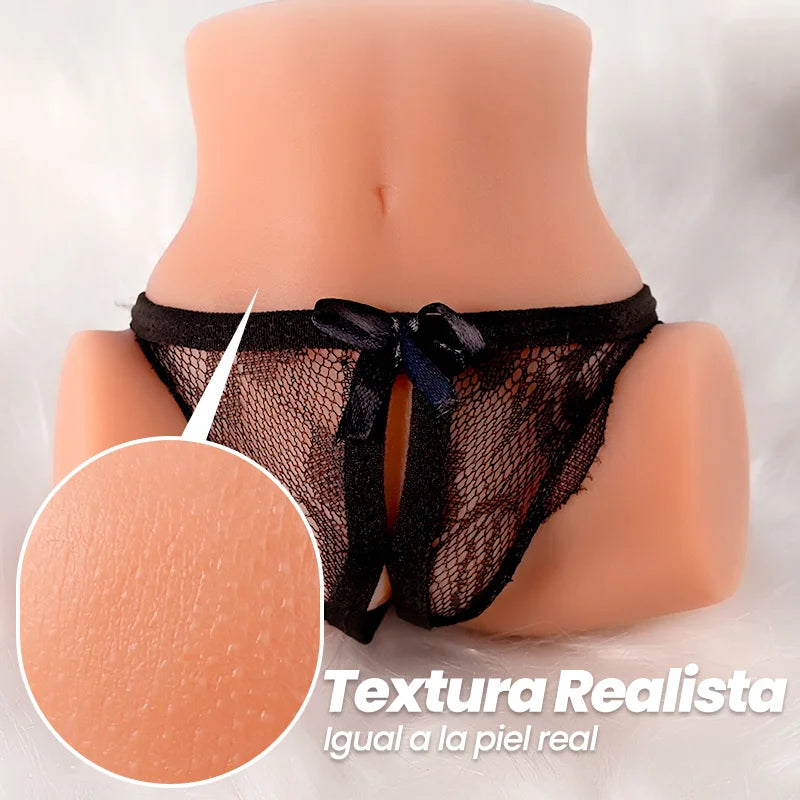✔ Torso completo ultrarealista – Incluye caderas, vientre, muslos y posición de piernas abiertas para penetración natural.